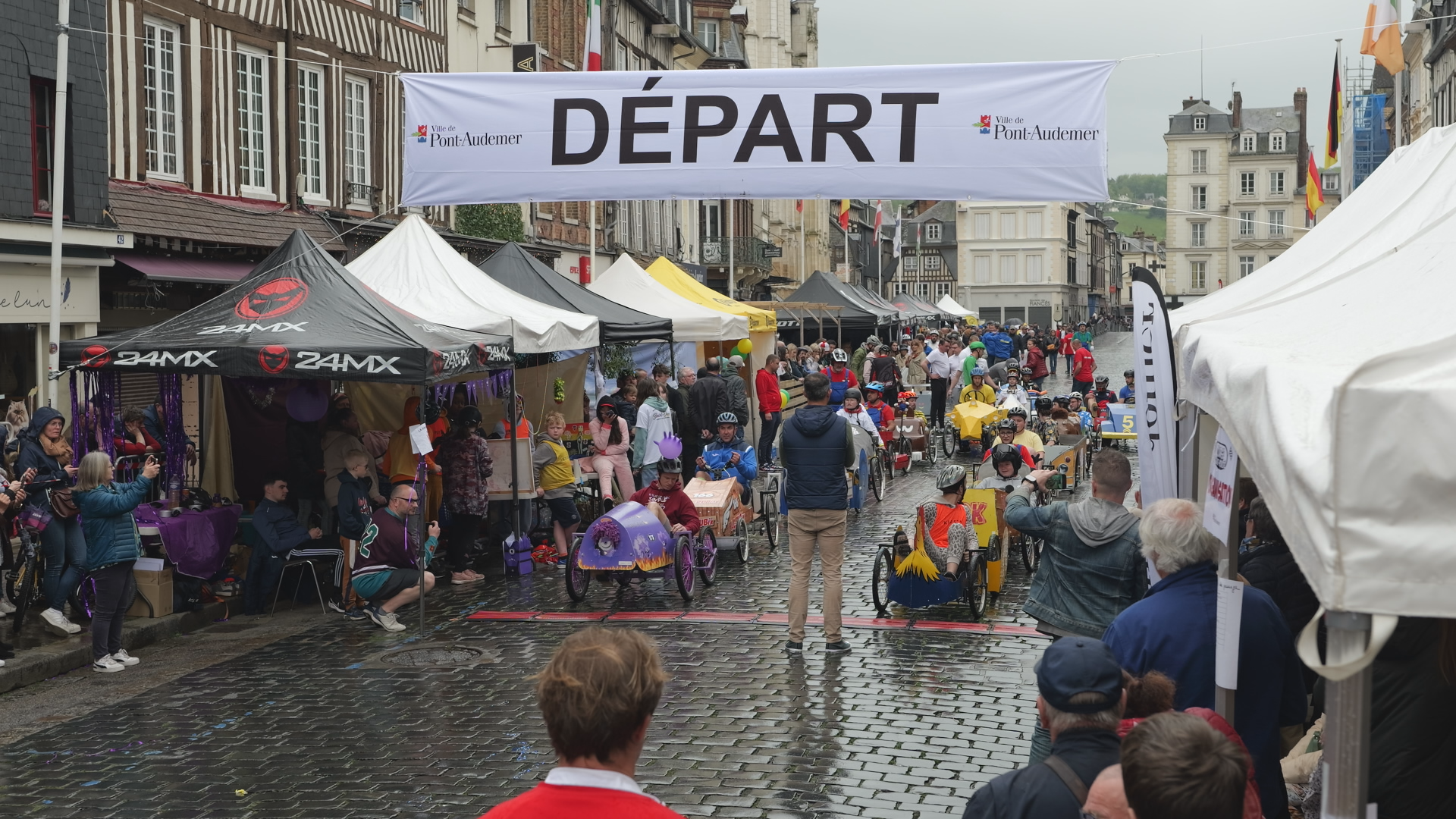 La ville de Pont-Audemer a organisé la 2ème édition de la course de voitures à pédales. Cet événement a eu lieu dimanche 5 mai 2024. Vingt voitures à pédales ont pris le départ rue de la République. Chaque équipe de 4 personnes représentait ses idoles. Un nouveau parcours, une nouvelle organisation, la pluie et les spectateurs ont été les ingrédients pour réussir une belle après-midi de bonne humeur, de rires, de divertissement, avec des visages rayonnant de gaieté.