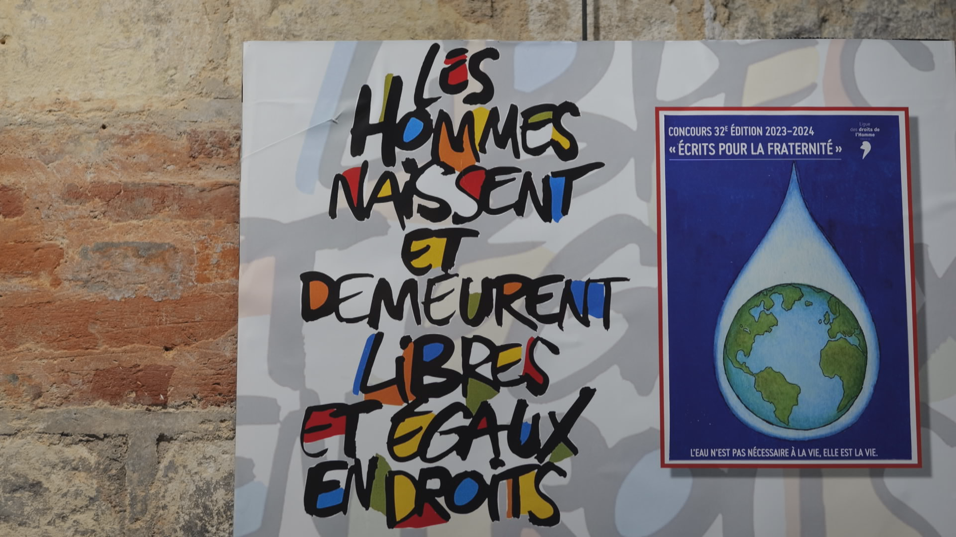 Créé en 1991, le concours international "Lettres pour la fraternité" a été renommé en 2005 "Écrits pour la fraternité". La Ligue des droits de l'Homme du secteur de Bernay et Pont-Audemer a organisé ce concours avec des élèves de leur secteur. Le travail réalisé par ses jeunes sur le thème de l'eau a été exposées à la galerie Théroulde le samedi 4 mai 2024.