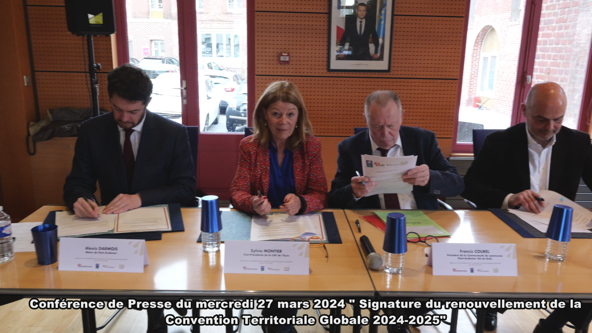 Conférence de Presse::Le renouvellement de la Convention territoriale Globale pour la période 2024-2025 a été officiellement signé lors d'une cérémonie spéciale. La Caisse d'Allocation Familiale de l'Eure, représentée par sa vice-présidente, accompagnée de son directeur, ainsi le maire de la ville de Pont-Audemer et le président de la communauté de communes de Pont-Audemer Val de Risle ont apposé leur signature,. Cette convention renouvelée témoigne de l'engagement continu des parties prenantes à soutenir et promouvoir le développement du territoire, ainsi que le bien-être des résidents.