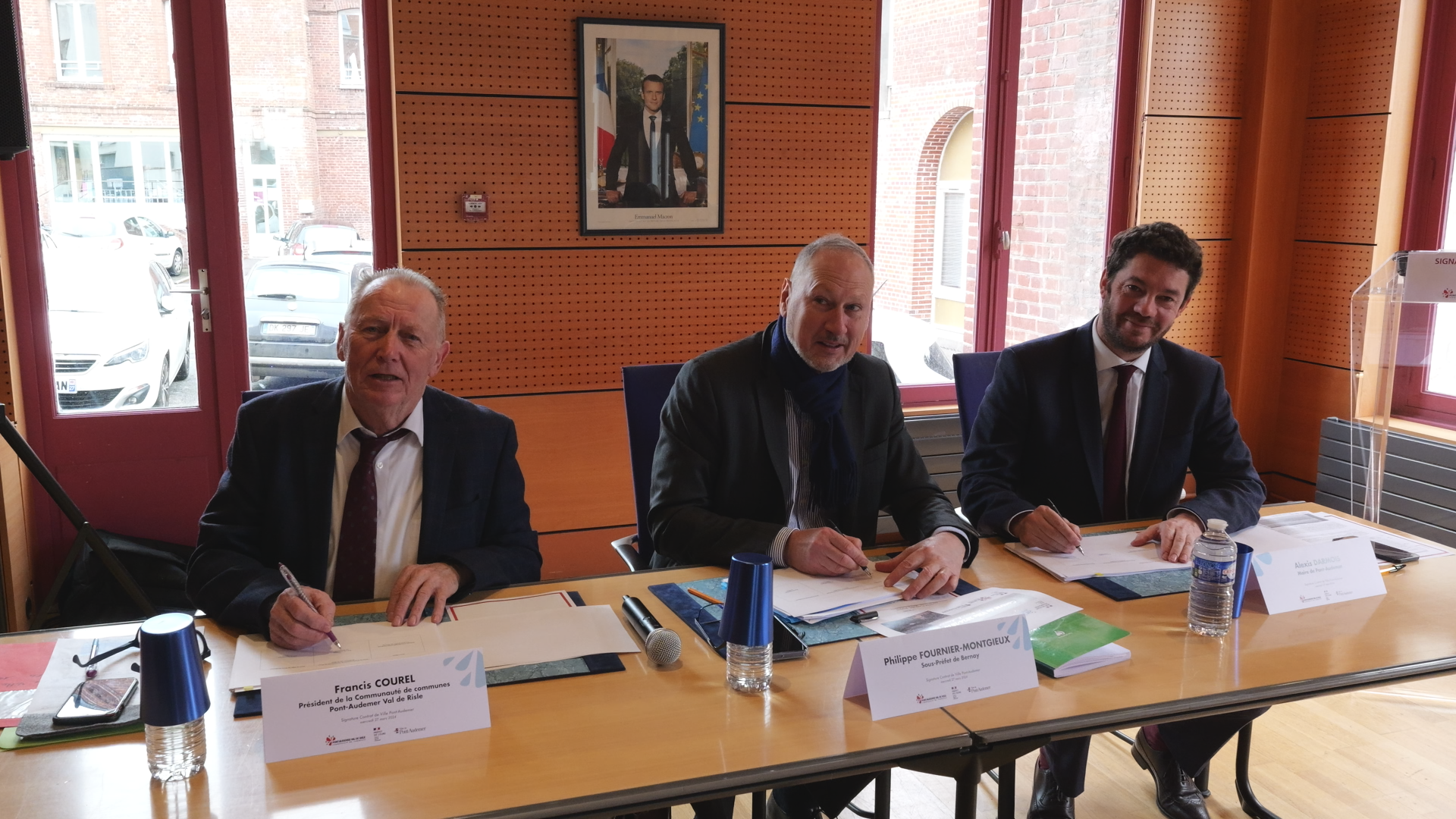 Conférence de Presse: La signature du contrat de ville par l'État, représenté par le sous-préfet de Bernay, le maire de la ville de Pont-Audemer et le président de la communauté de communes de Pont-Audemer Val de Risle, marque un engagement fort en faveur du développement urbain et de l'amélioration de la qualité de vie dans la région. Ce contrat représente un accord concret sur les actions à entreprendre pour favoriser l'inclusion sociale, le développement économique, l'accès au logement, ainsi que la mise en place d'infrastructures et de services adaptés aux besoins des habitants. La signature de ce contrat témoigne de la volonté des différentes parties prenantes de travailler ensemble pour bâtir une communauté dynamique, solidaire et durable.