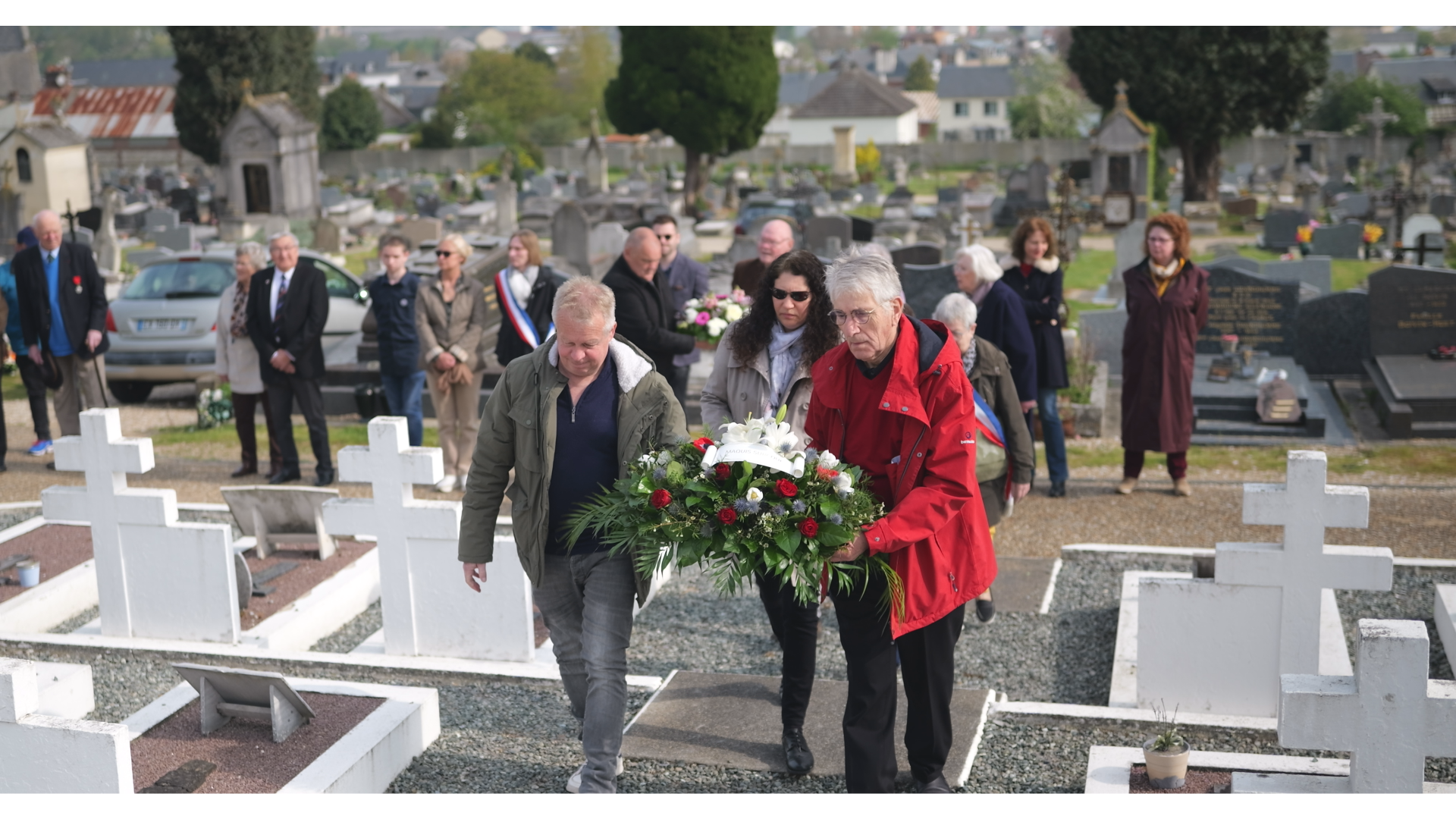 Il est 10 h 15, élus, gendarmes de la brigade de Pont-Audemer, anciens combattants, famille du commandant Robert Leblanc ainsi que des anonymes se sont rassemblées au cimetière, Saint-Ouen.