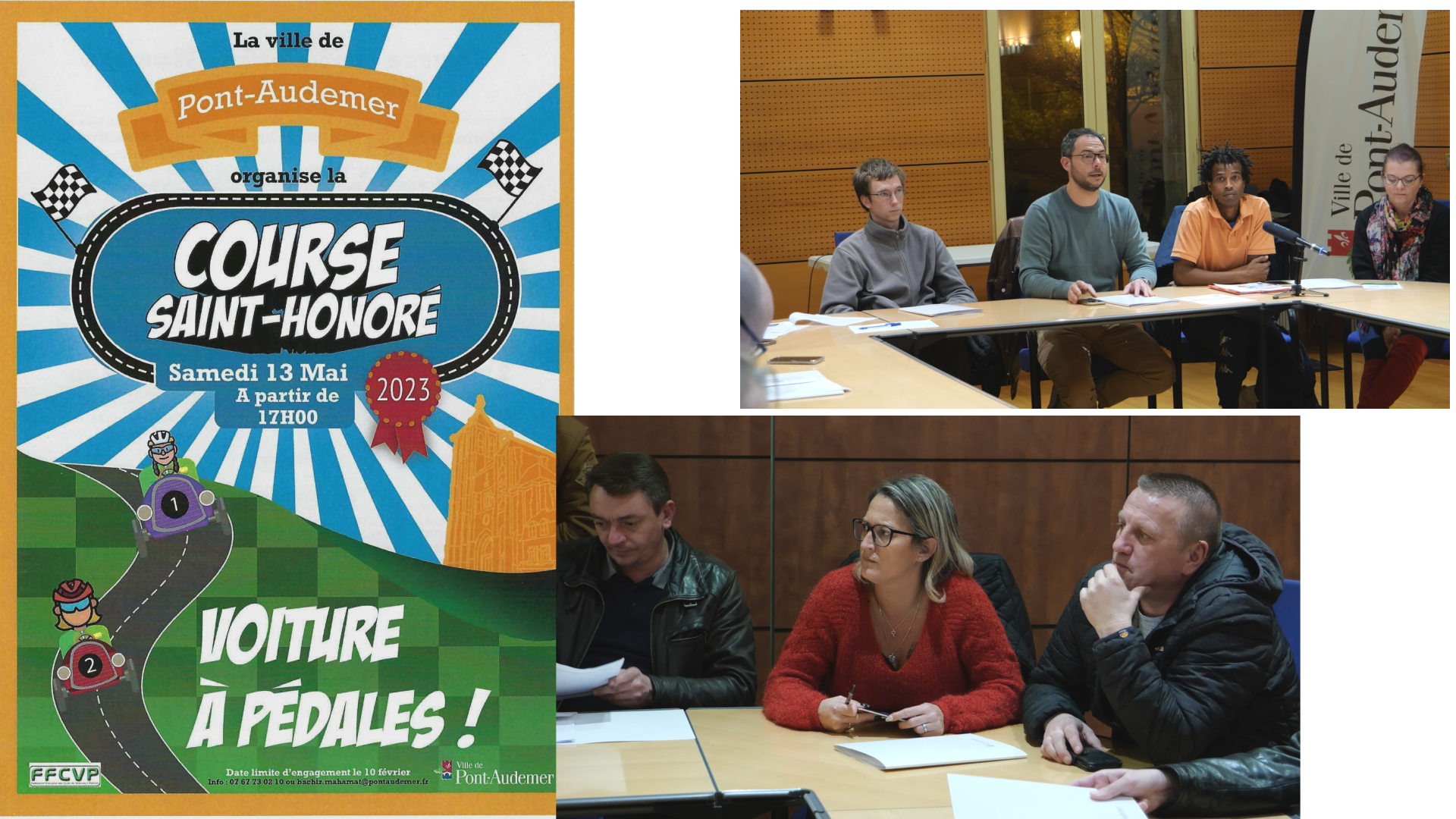 Conférence de presse concernant la course de voitures à pédales qui aura lieu le samedi 13 mai à partir de 17 h 00.
