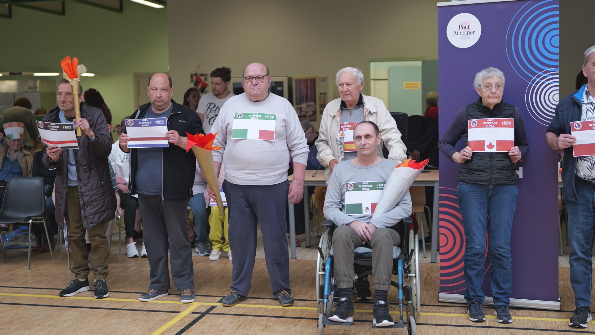 La ville de Pont-Audemer a rejoint le programme "Terre de Jeux" suite à l'accueil de la flamme des Jeux Olympiques. Béatrice, animatrice à l'EHPAD des 4 Saisons, a eu l'idée d'organiser des olympiades pour les résidents. Cette manifestation a eu lieu mardi 14 mai au complexe sportif Alexis Vastine, où 12 EHPAD du département de l'Eure ont répondu présents.