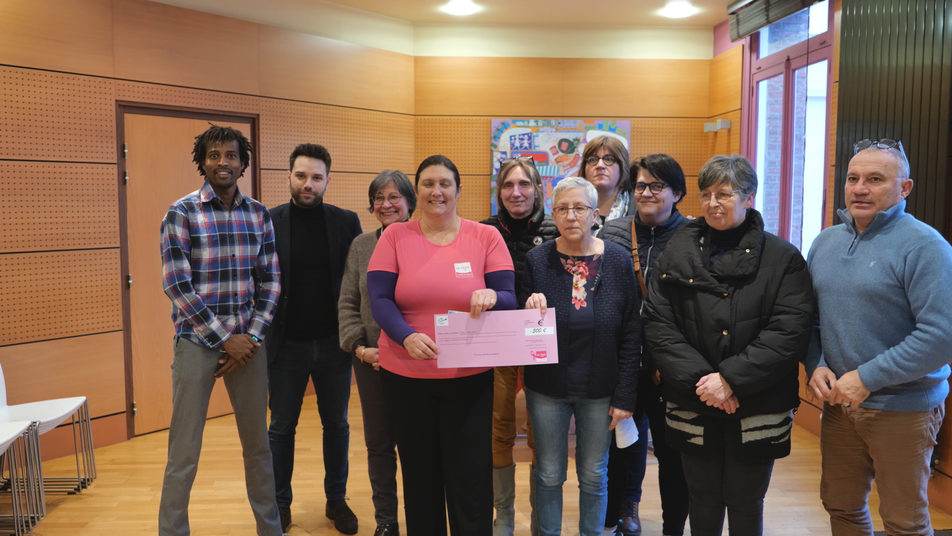 Remise de chèque par madameBrigitte DUTILLOY, 6ème Maire Adjoint, chargé des relations intergénérationnelles et des ainés, pour la ligue contre le cancer.