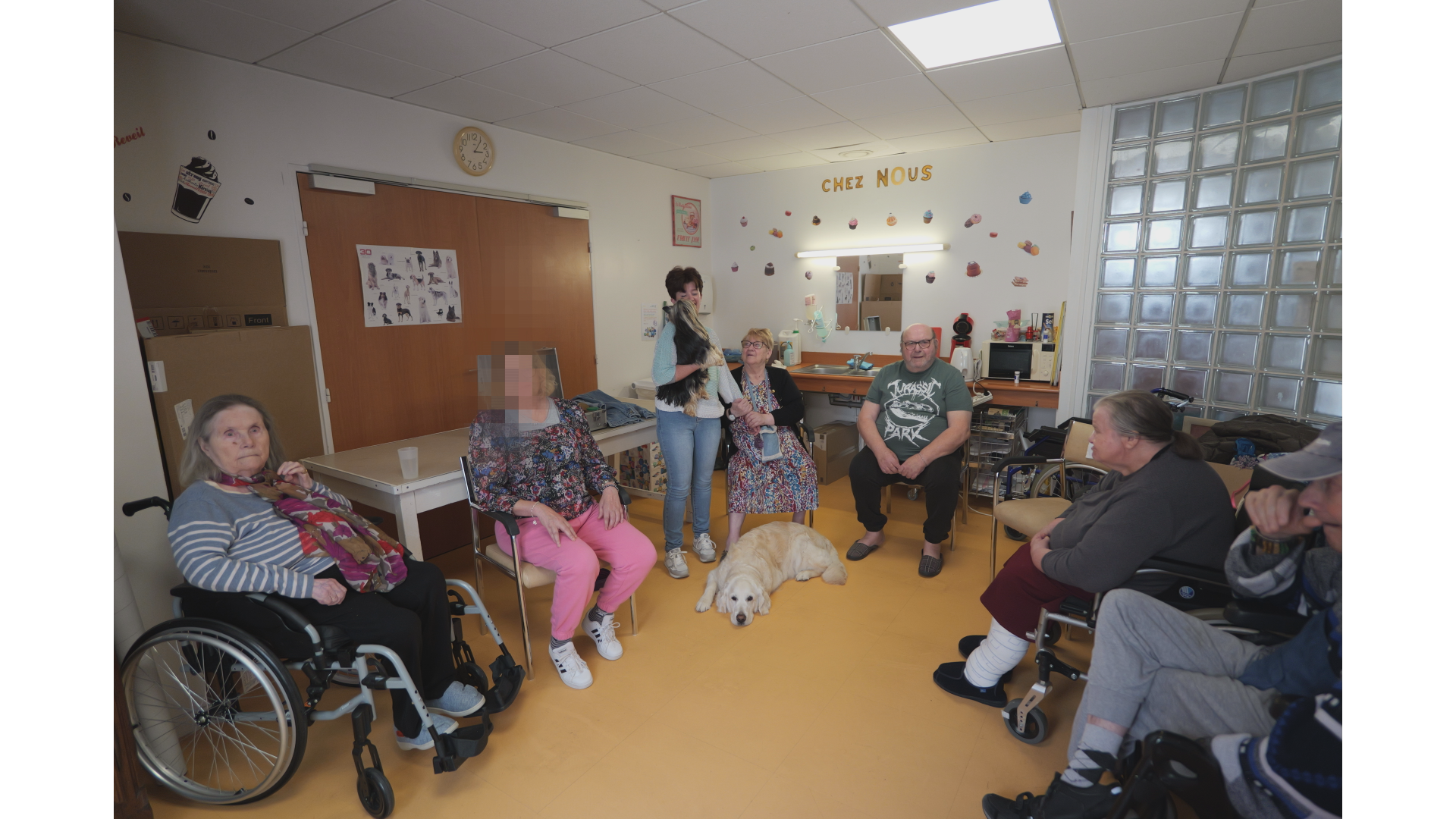 Régulièrement, l'EHPAD des Quatre Saisons organise des animations pour divertir les résidents. L'association Ensemble, qui réalise de nombreuses actions, a décidé de financer la zoothérapie. Pour mettre en place ces séances, elle a fait appel à Sévrine Quibel de l'association Mandarine, qui vient réaliser des séances avec ses deux chiens. Ces séances, appelées zoothérapie, apportent un bien-être aux résidents qui y participent.